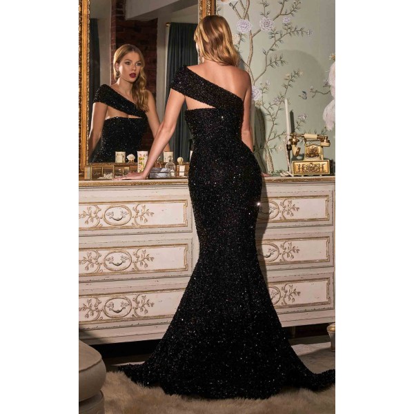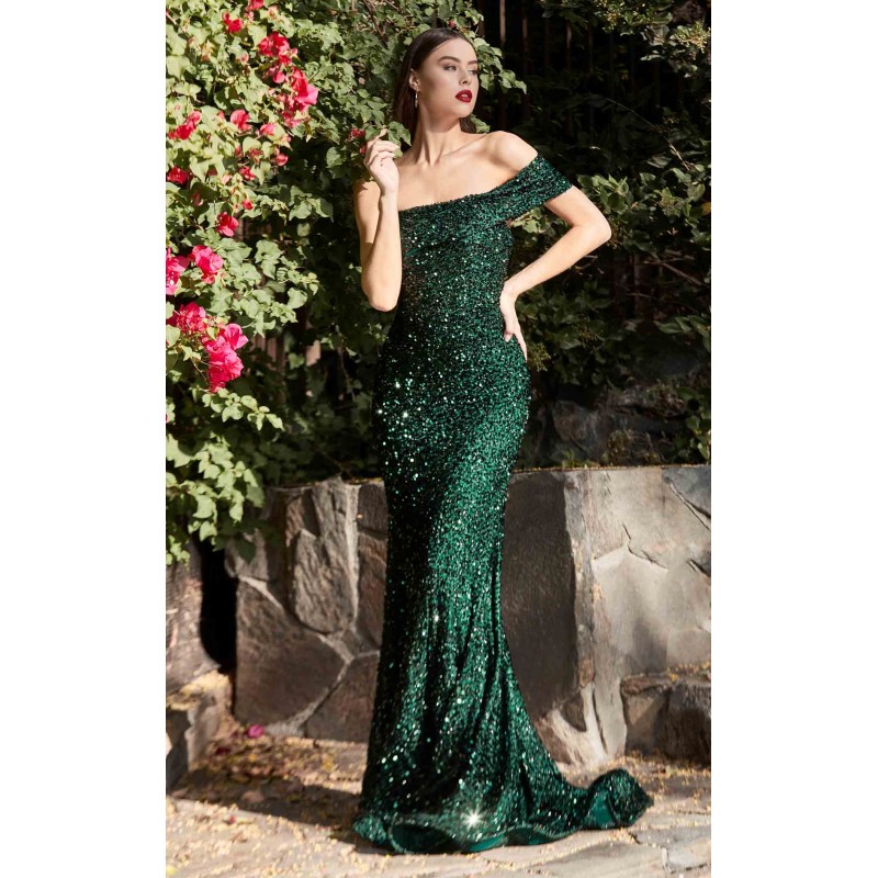 Beautiful Asymmetrical Neckline Mermaid Glittering Dress from Cinderella Divine