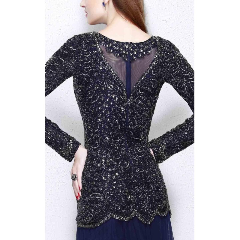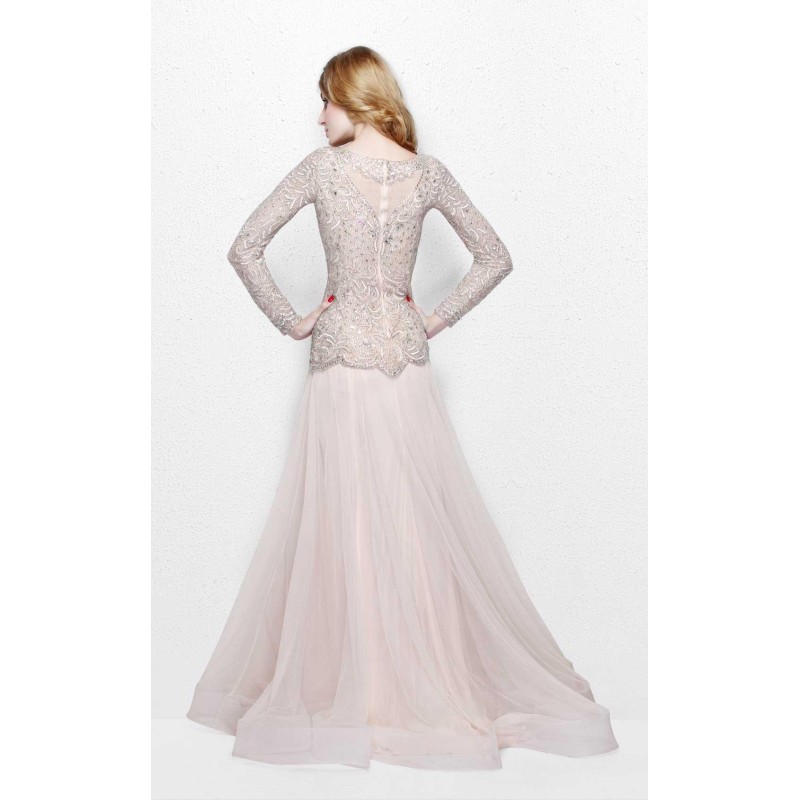 Long-Sleeved Shimmer Beaded Evening Gown by Primavera Couture