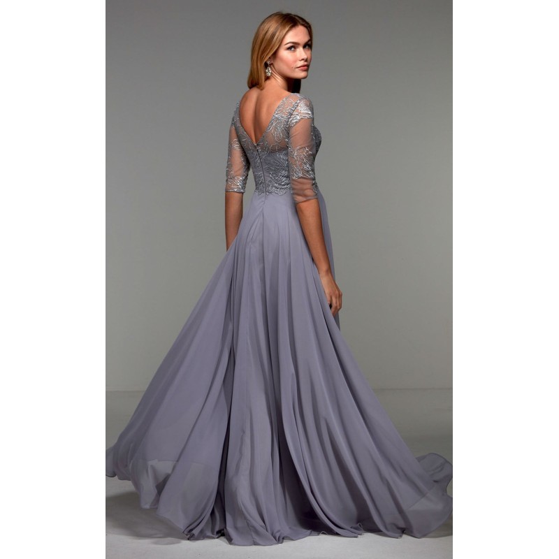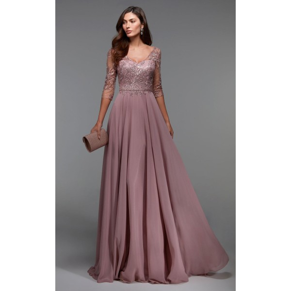 Tantalizing Illusion Sleeves Flowy Evening Dress by Alyce
