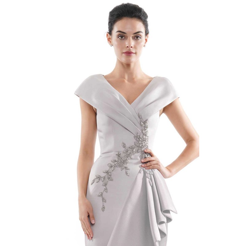 Look absolutely pretty in Marsoni MV1086 Dress. This delicate piece features a fit & flare silhouette and glittering accents. The short sleeve bodice has a v-neck neckline and a natural waist.