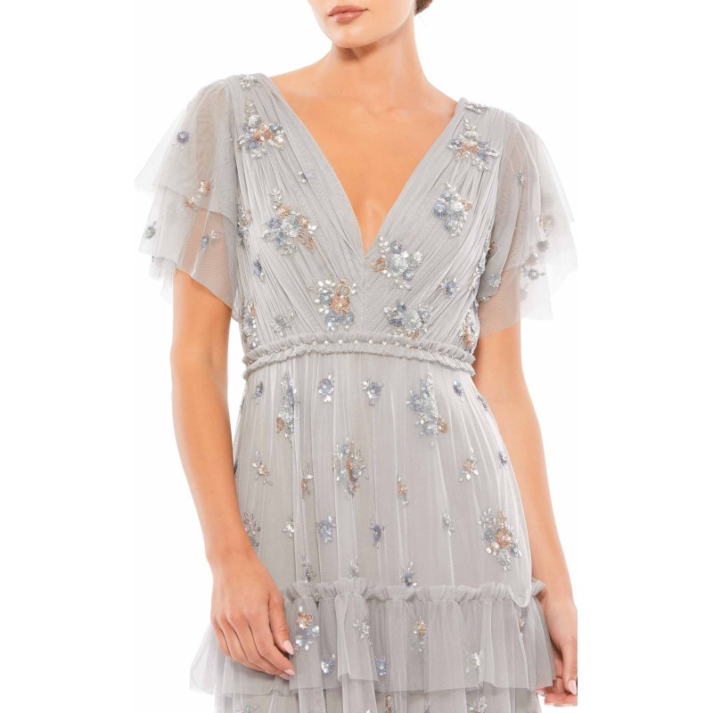 Plunging Neckline Ruffled Dress with Butterfly Sleeves by Mac Duggal
