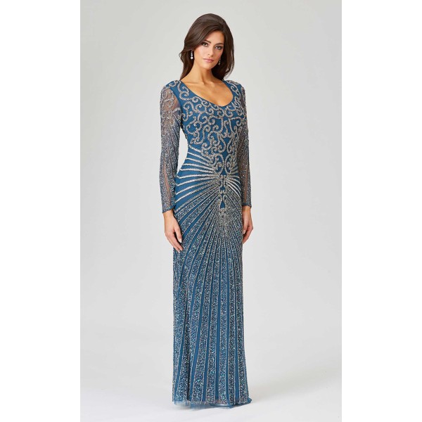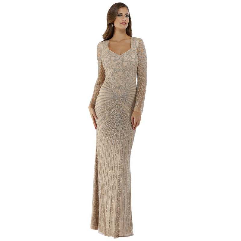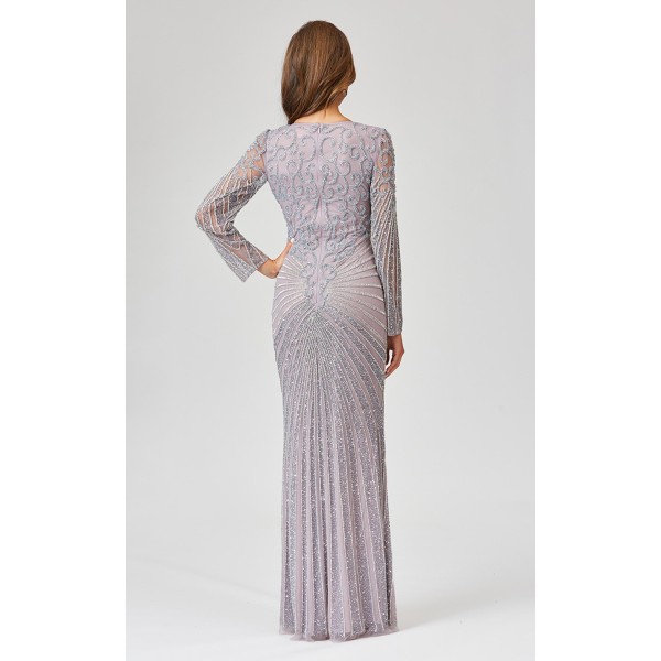 Striking sweetheart neckline long sleeves embellished party dress by Lara