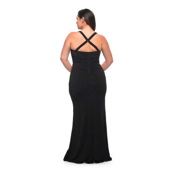 Find the diva in you to shine in this dress designed by La Femme. The gorgeous dress has halter straps with a scoop neckline. There are no tacky embellishments. The dress is fitted and shaped in a sheath silhouette. Beautiful and elegant, the dress shows-off a monochromatic design in a solid pattern.