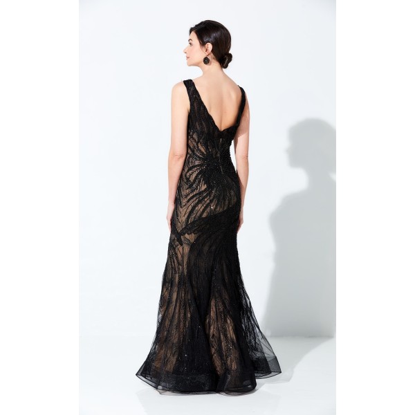 Look absolutely wonderful in Ivonne D 220D36 Dress. This exquisite piece features a column silhouette and glittering accents. The sleeveless bodice has a v-neck neckline and a natural waist.