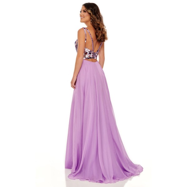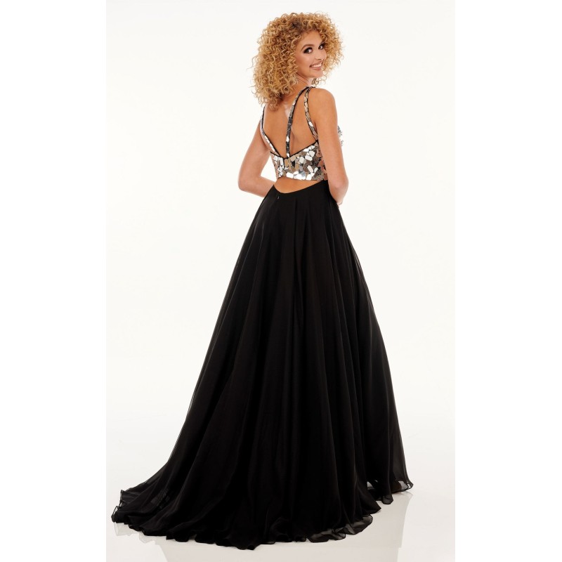 Look absolutely divine in Rachel Allan 70060 Dress. This dazzling piece features a a-line silhouette and glittering accents. The sleeveless bodice has a v-neck neckline and a natural waist.