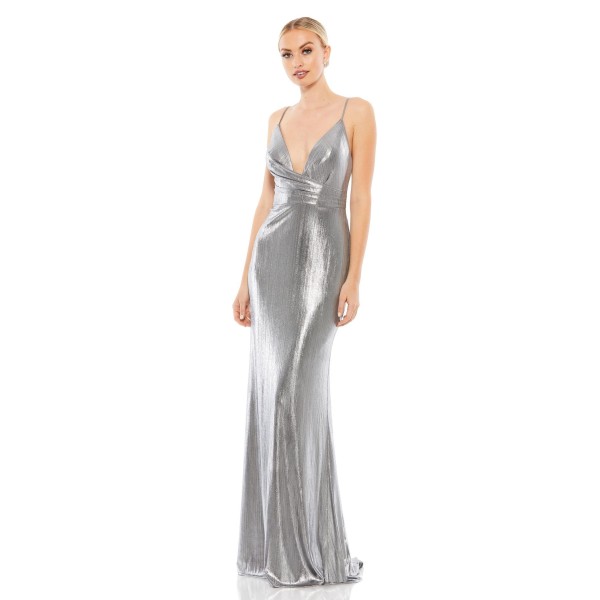 Metallic Plunging V-neckline Dress by Mac Duggal