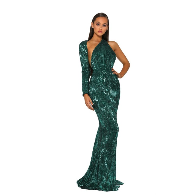 One shoulder long sleeve mermaid gown by Portia and Scarlett