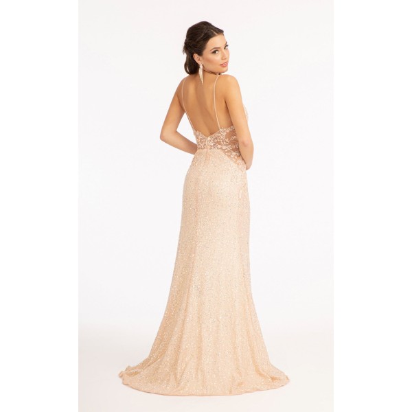 Be the talk of the evening in this sexy dress from GLS by Gloria. This mermaid dress is decorated with sequins and has exquisite stitching and gorgeous jewels. The deep sweetheart neckline provides a whimsical touch, while the wide open back with sheer side offers a glamorous touch.