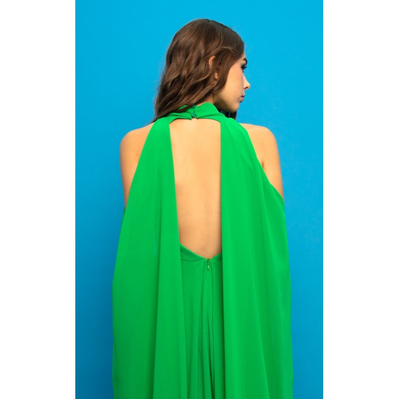 This charming dress from Edition Gemy Maalouf would enchant everyone. This dress has an open back, a high-cut neckline, and draping details on the overlapped cape-like sleeves. Its charm is enhanced by the open slit in the middle. At your next dance, everyone would be looking at you in this vintage-inspired dress. Slay the event by pairing it with stunning footwear.
